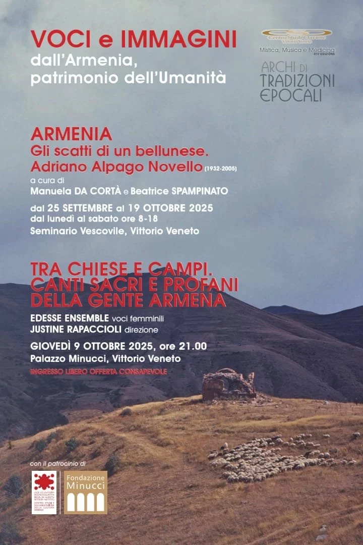 Il concerto offre un accompagnamento sonoro alla Mostra fotografica “Armenia. Gli scatti di un bellunese. Adriano Alpago Novello (1932-2005)”, curatrici Manuela Da Cortà e Beatrice Spampinato, allestita in Seminario Vescovile, Vittorio Veneto, e visitabile fino a domenica 19 ottobre, tutti i giorni esclusa la domenica dalle 8.00 alle 18.00.